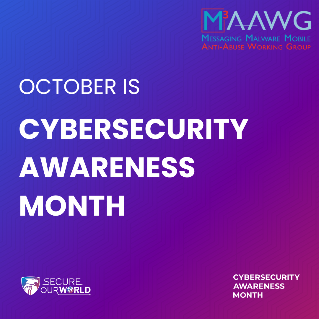 Cybersecurity Awareness Month is a vital online safety and education initiative that is celebrating its 21st year—just one year older than M3AAWG itself. As a Cybersecurity Awareness Month champion, M3AAWG has committed to continuing to provide information to advise companies, individuals, and government agencies on how to protect our communities against online abuse.