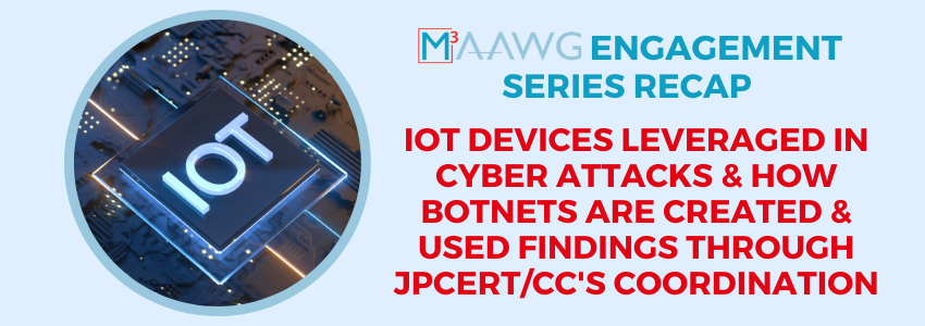 The Messaging, Malware, and Mobile Anti-Abuse Working Group (M3AAWG) hosted an Engagement Series webinar this past spring instructed by Shoko Nakai with the Japan Computer Emergency Response Team Coordination Center (JPCERT/CC). The M3AAWG member-only session, Internet of Things (IoT) Devices Leveraged in Cyber Attacks and How Botnets are Created and Used: Findings through JPCERT/CC's Coordination, covered the continued use of malware in exploiting routers, security cameras, DVRs, and other devices belonging to the IoT.