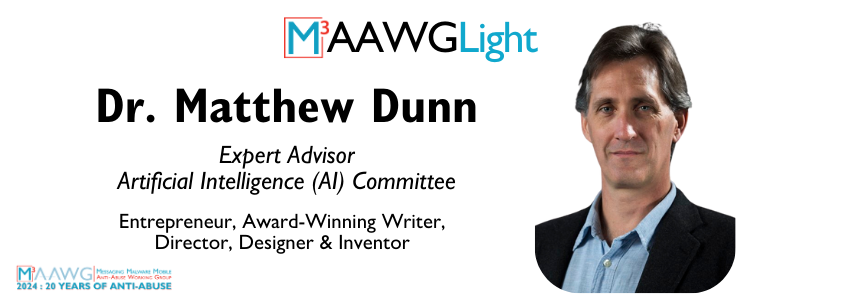 Dr. Matthew Dunn recently joined M3AAWG’s team of Expert Advisors. He is a serial entrepreneur and executive with wide-ranging experience. He has been a startup CEO, Fortune 1000 Senior Vice-President and CIO, Microsoft veteran, consultant, technology standards organization Executive Director, and university professor. He is also an award-winning writer, director, designer, and inventor, holding over a dozen patents in diverse fields.